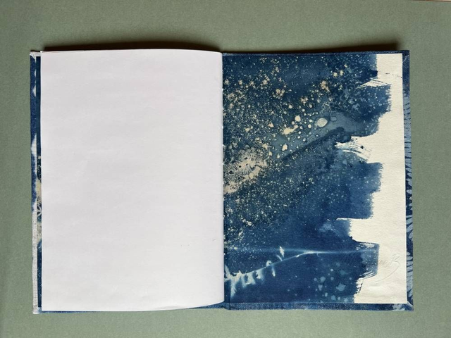 - La 2ème et 3ème de couverture est un cyanotype que j'ai recyclé car présentant quelques défauts à mes yeux